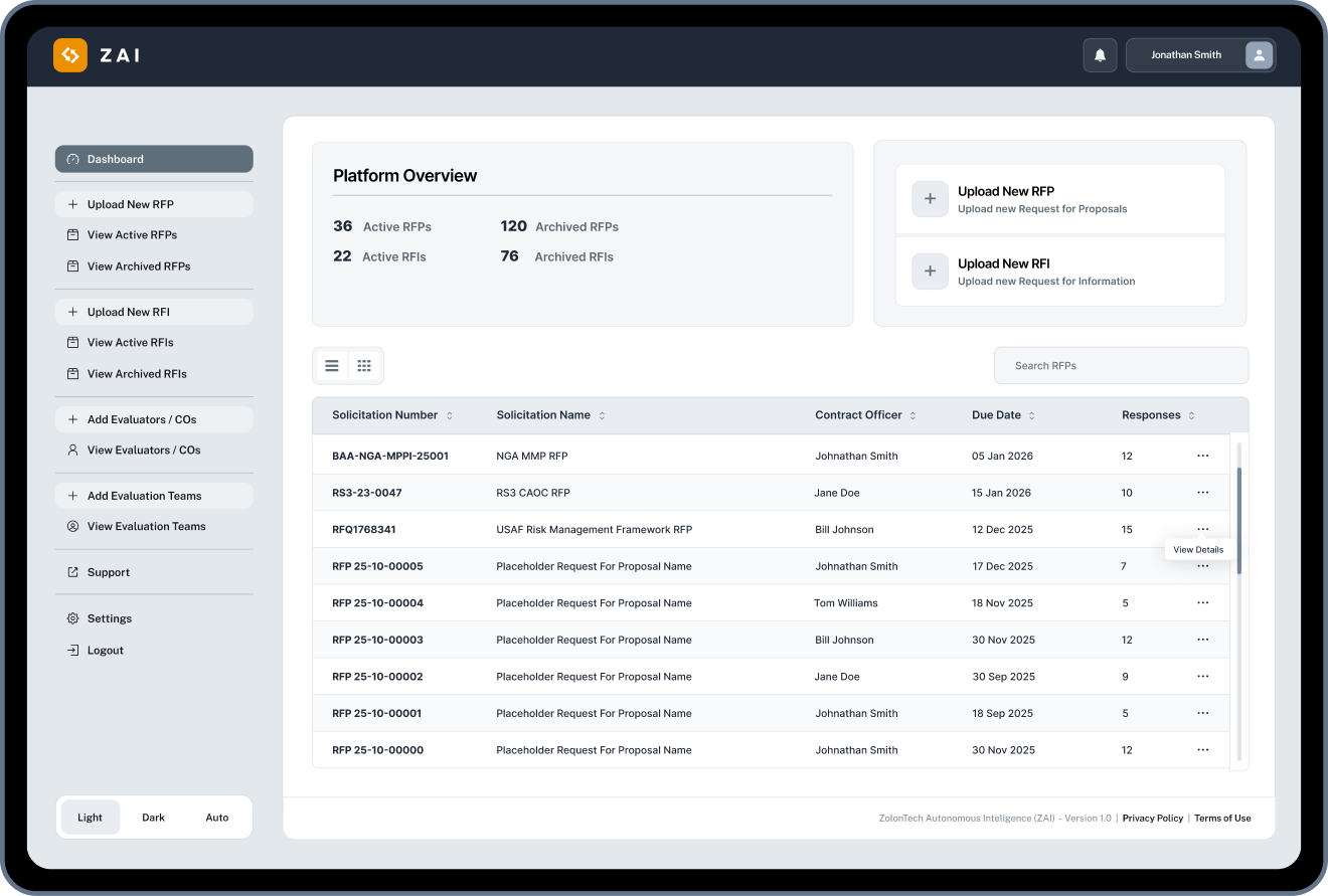 Faster evaluations. Defensible decisions. Mission-ready acquisition—powered by ZAI.